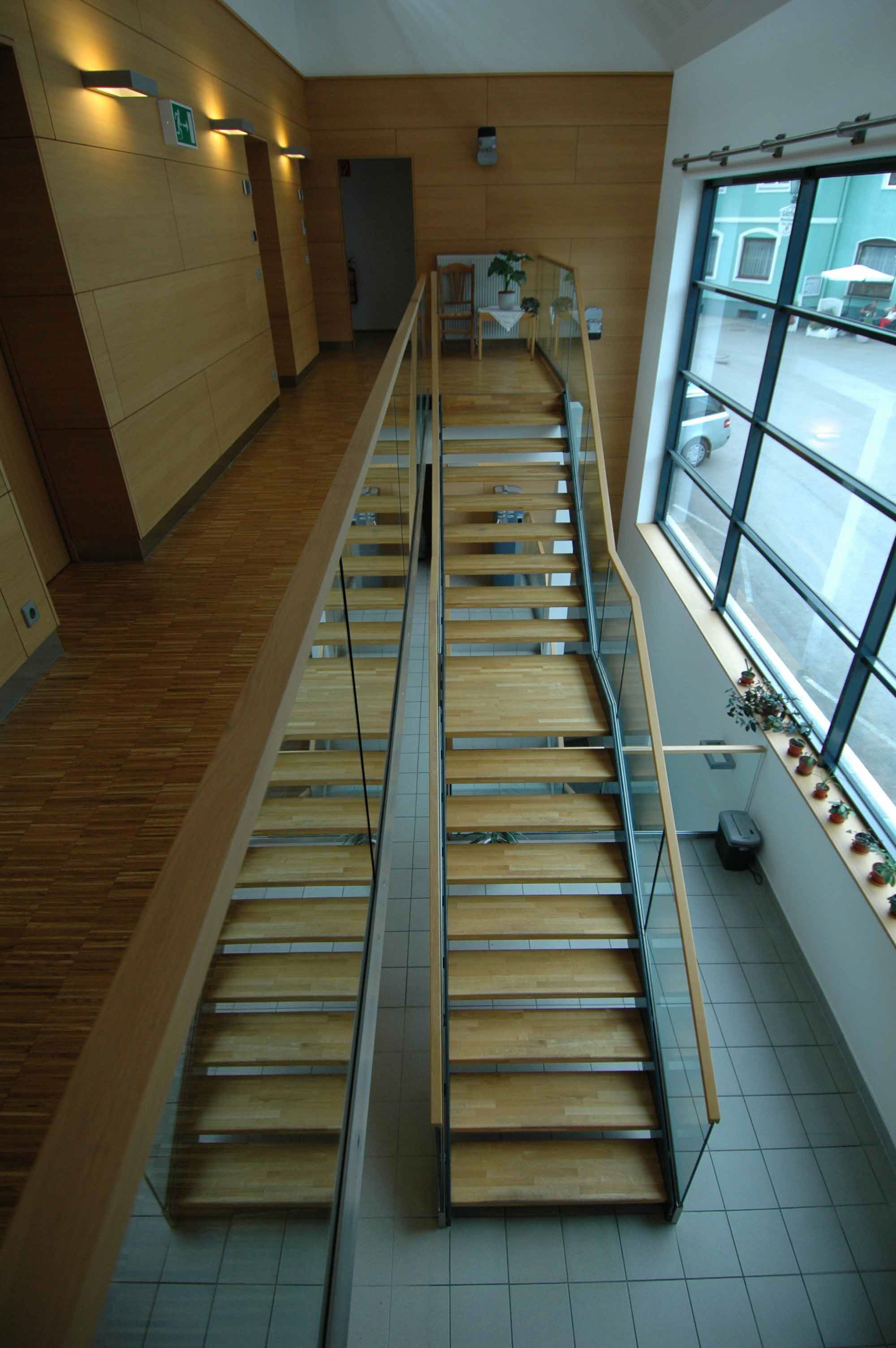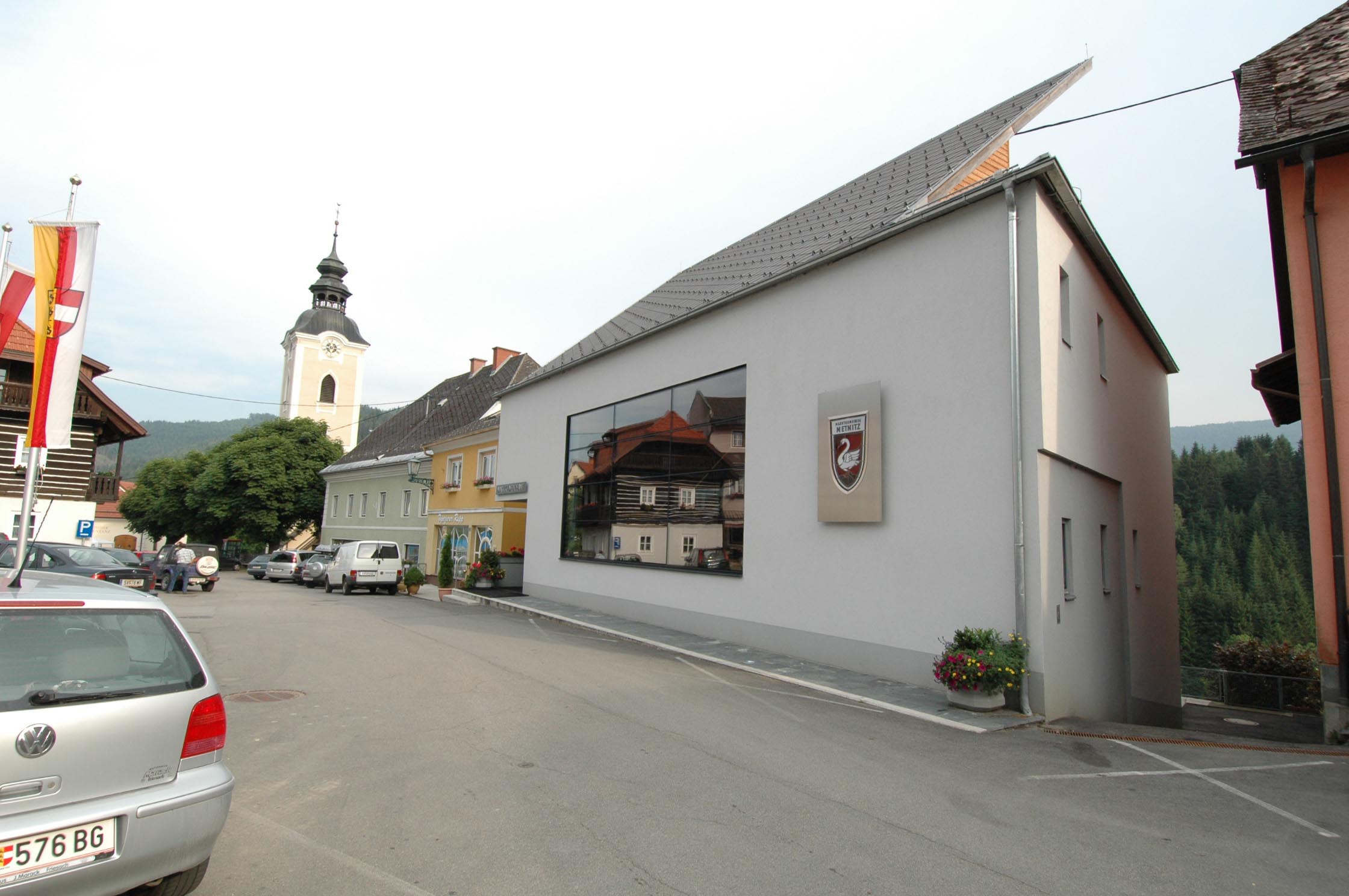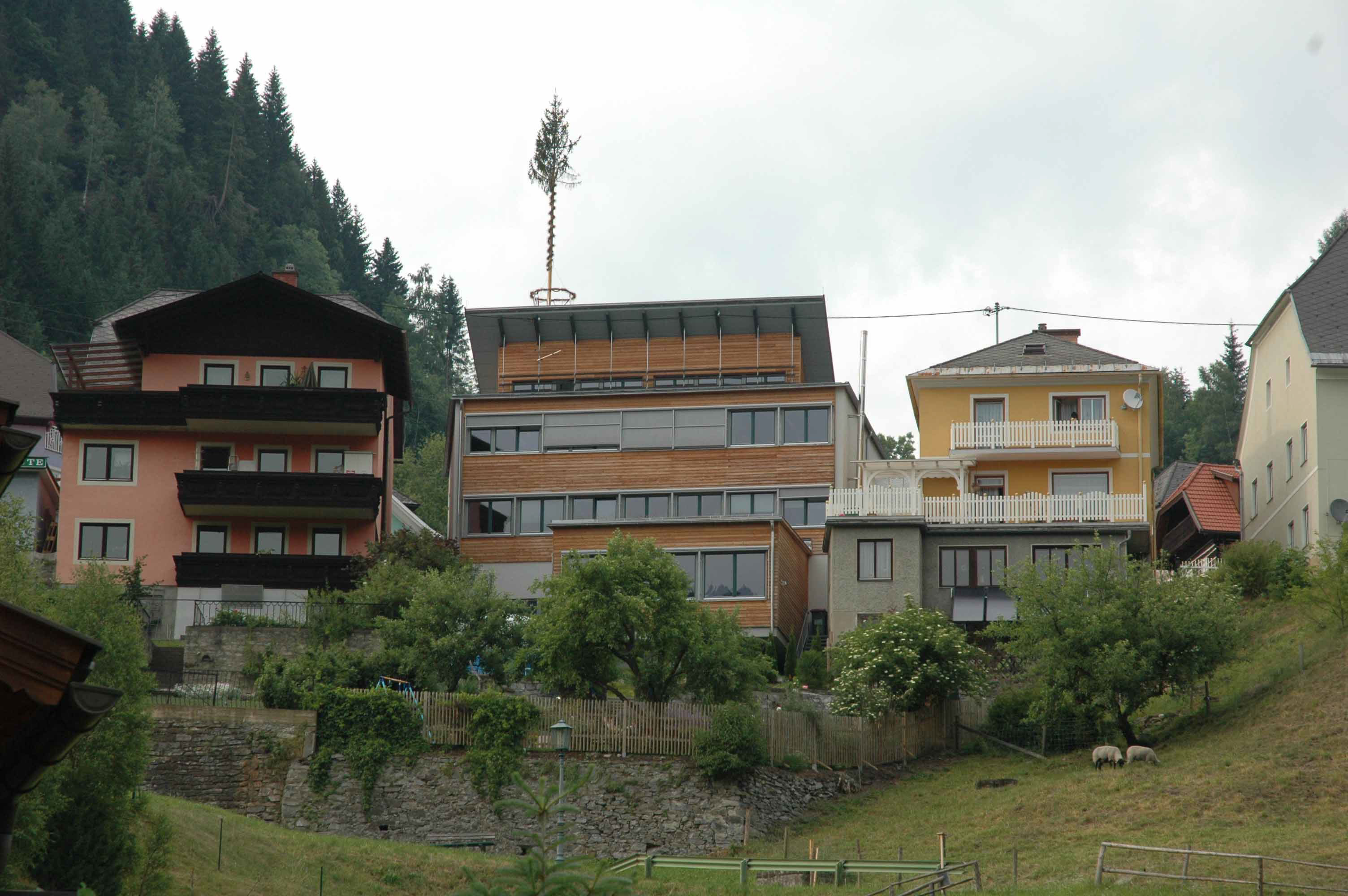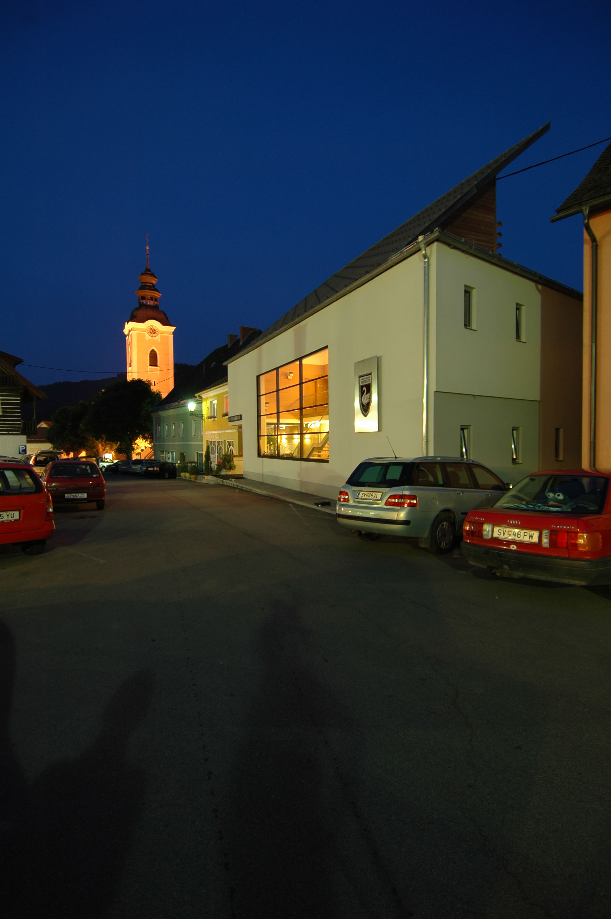 fassade und steildach fügen sich ins platzbild ein - die moderate gestaltung integriert das amtshaus in das ländlich geprägte umfeld. zur talseite wandelt sich der bau in eine fein durchgebildete holzstruktur, zeigt sich die dachschräge als sonnen-lichtfänger für das zum platz orientierte stiegenhaus. der aufgang zu den amtsräumen und der marktplatz sind durch das grosse fenster in eine wechselseitige beziehung gebracht.