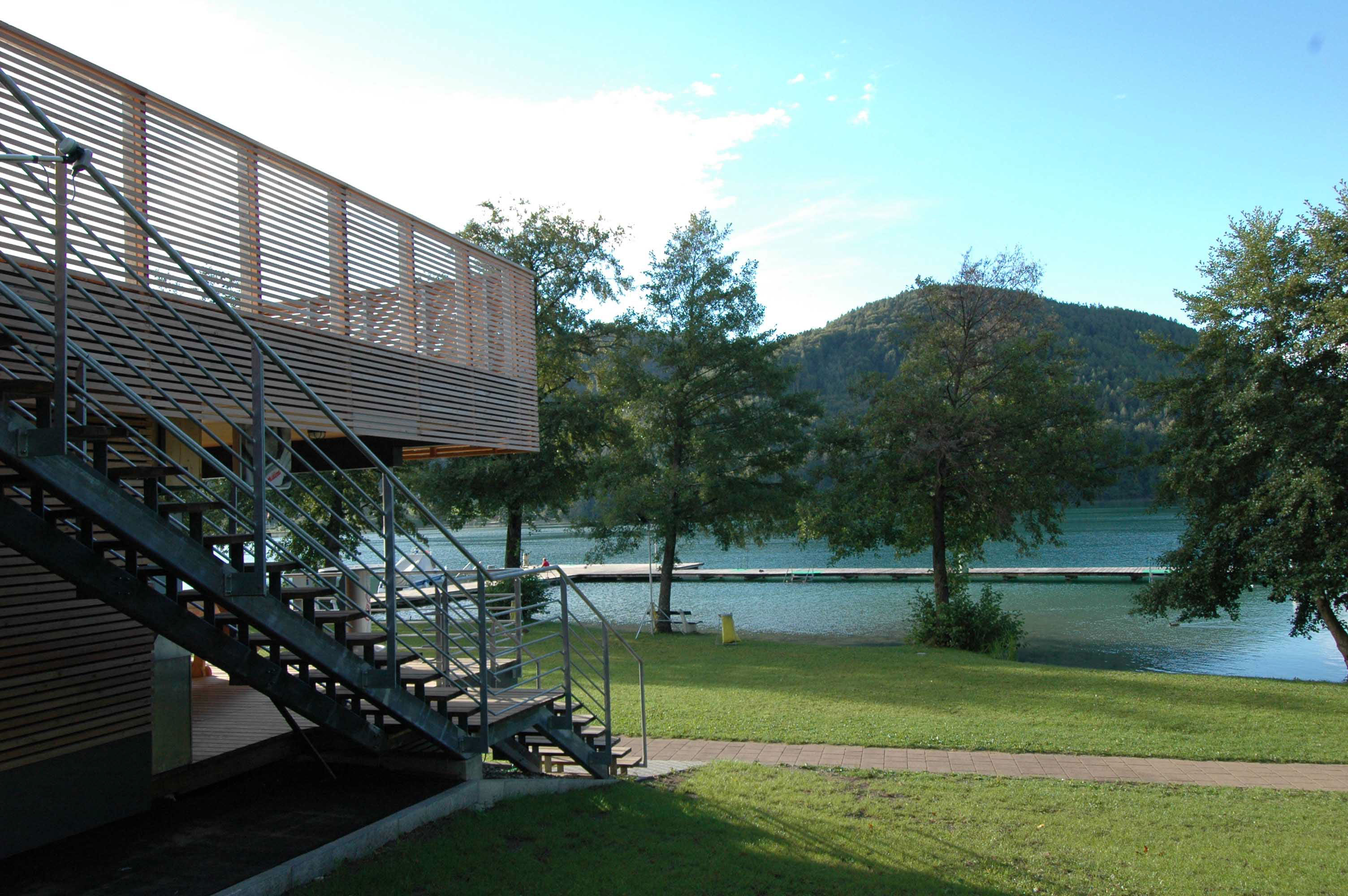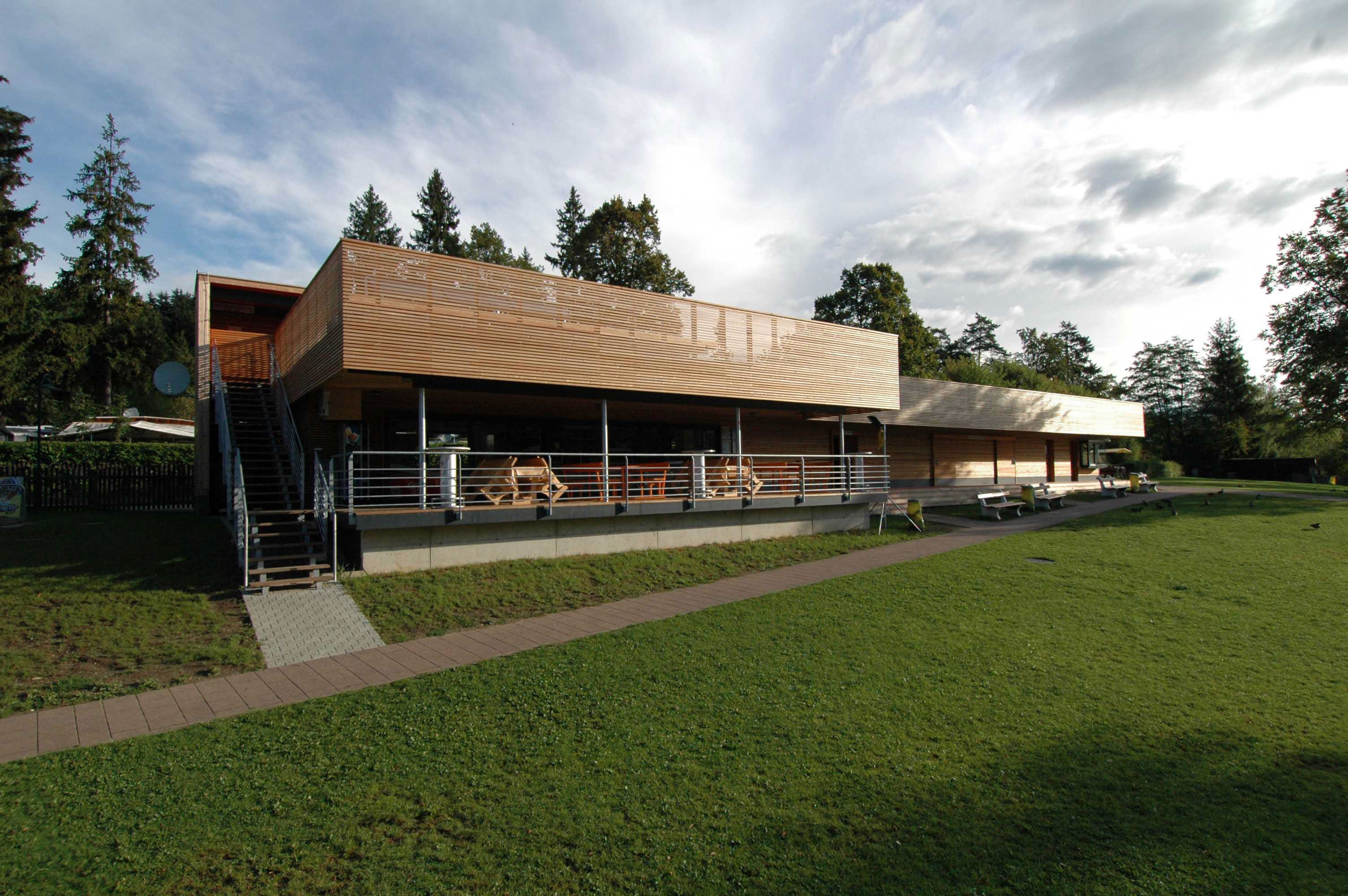 der konsequente holzbau punktet doppelt: er bietet nicht nur die üblichen serviceleistungen eines freibads, sondern auch ein weit ausladendes sonnendeck; und er garantiert eine attraktiv kurze bauzeit (knapp 4 monate).