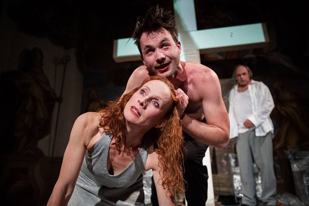 schauplatz für die inszenierung von ute liepoldist die burgkapelle im museum moderner kunst kärnten. eine siebenfache mörderin entführt einen katholischen priester, um in einer aberwitzigen beichte ihr gewissen zu erleichtern.