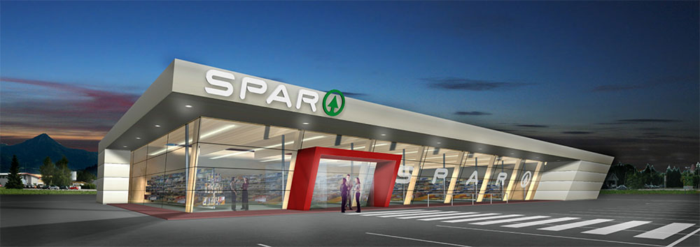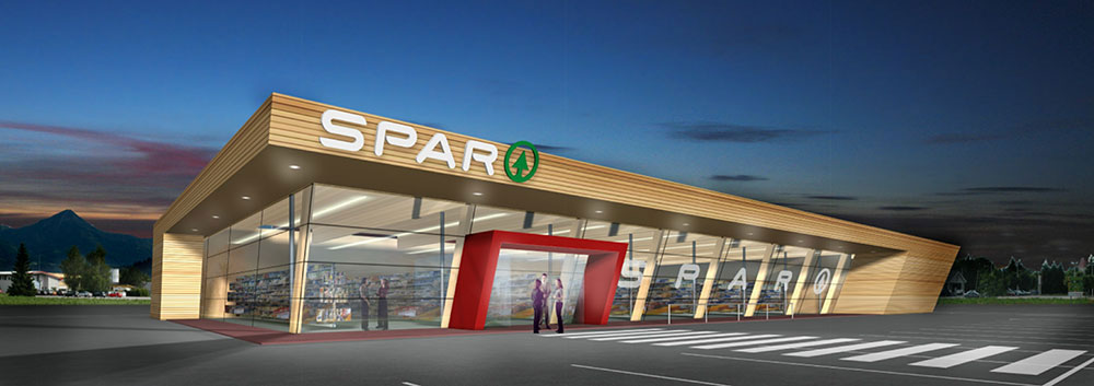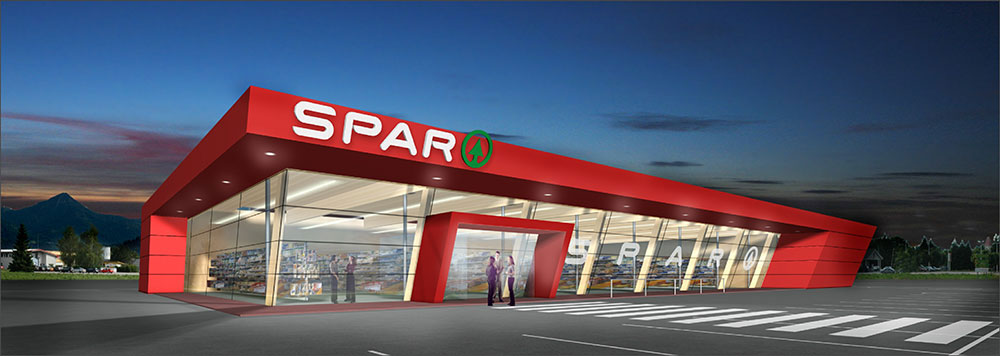 den planern war wichtig, den entwurfsanforderungen des bauherren durch ein technisch einfaches bauwerk, welches sich zum kunden öffnet, und durch seine formensprache eine klare corporate architecture (ca) vermittelt, zu entsprechen. diese ca ist durch variabilität der materialien in unterschiedlichen baulichen umfeldern anzuwenden, vom freien feld in „xy“ bis in die innerstädtische baulücke anderswo, wobei der bereits eingeführte rote „spar – eingangs-trichter“ jeweils unverändert bleibt.