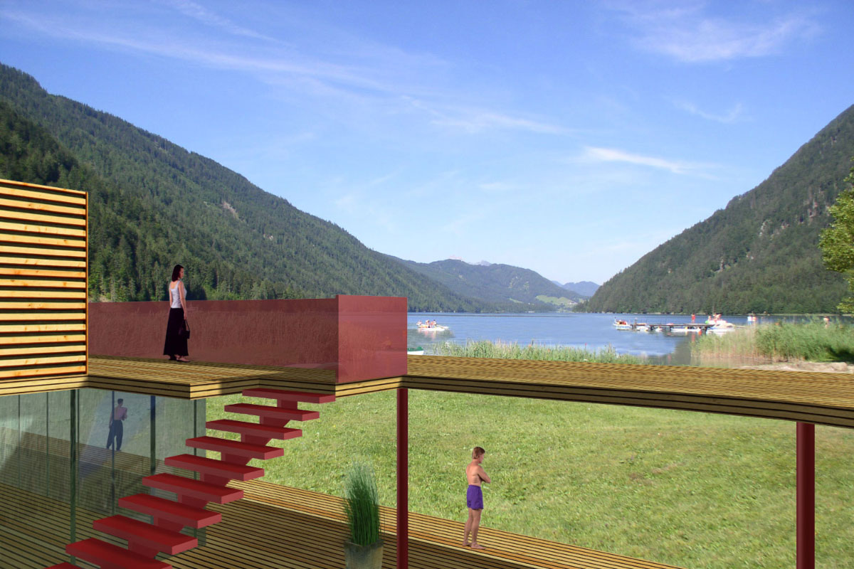 der entwurf soll eine absage an freizeitevent und badeinszenierung und eine anforderung zum vertrauen – in landschaft, wasser und sonne – somit in kärntens nachhhaltigste ressource sein.