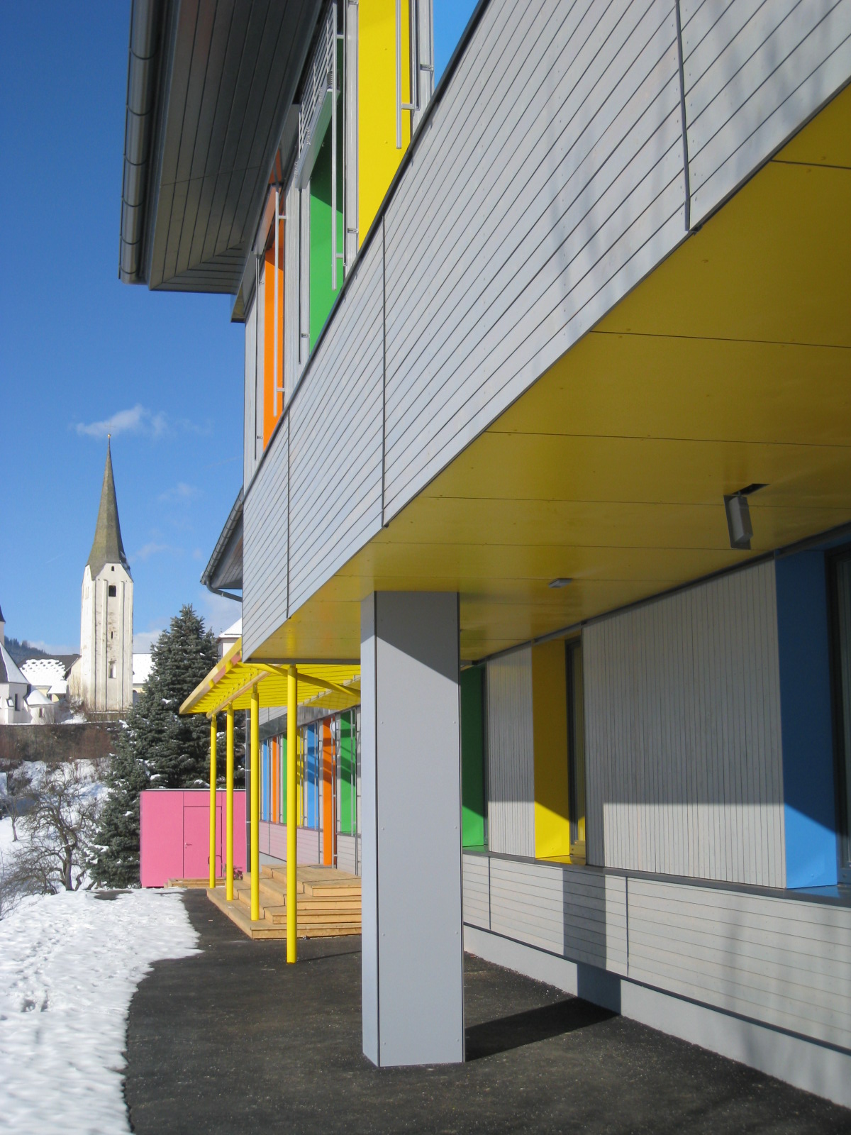 der aus den 1960ern stammende schulbau wurde im rahmen eines forschungsprojektes generalsaniert. eine neue gebäudehülle aus vorgefertigten holztafelelementen und dreischeibenverglasungen kombiniert mit einer den erfordernissen angepassten lüftungsanlage samt wärmerückgewinnung ermöglichen eine 90 % ige reduktion des energiebedarfes.